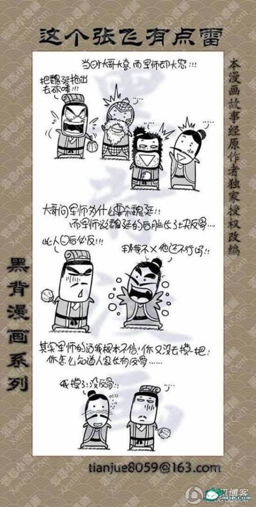 猛张飞看似粗犷,但心思也是非常细密的!刘关张好基友,腹黑的孔明,娘炮的子龙,龌龊的魏延,原来三国也是可以如此可爱的。
