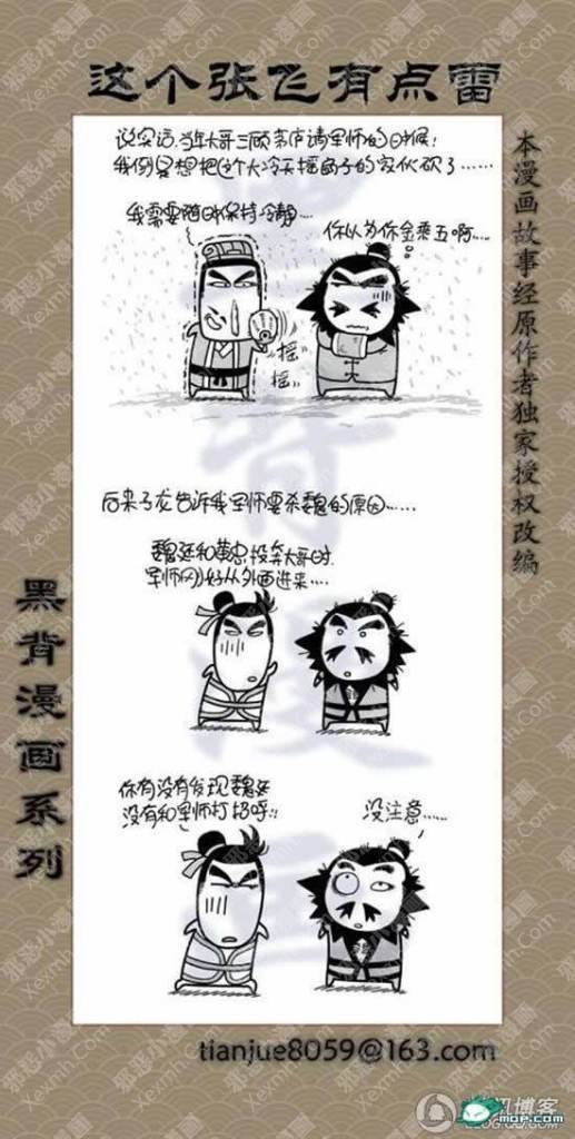 猛张飞看似粗犷,但心思也是非常细密的!刘关张好基友,腹黑的孔明,娘炮的子龙,龌龊的魏延,原来三国也是可以如此可爱的。